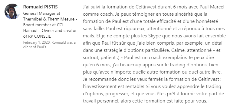 Allez sur cette page : https://celtinvest.com/formation-trading et descendez légèrement pour écouter le témoignage audio.