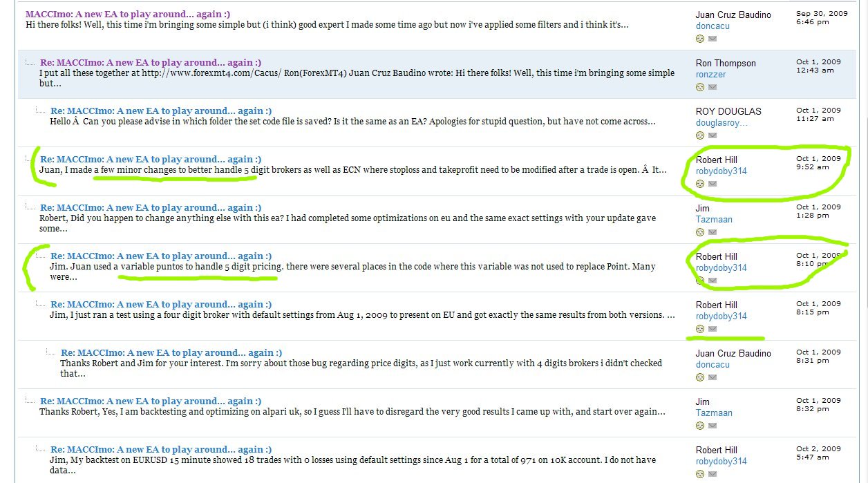 You'll see in this piece of image that you've also used some part of code from Robert Hill, one of the most valuable and respected programmers from that group and the forex programmers community...