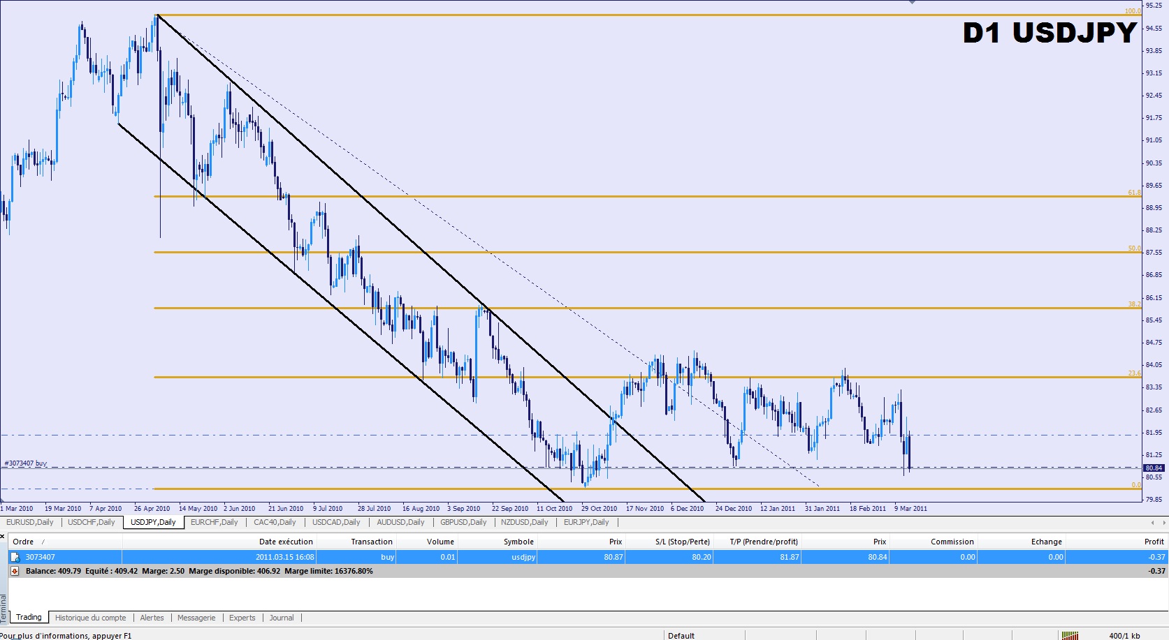 Autrement je suis sortie sur stop loss de ma position longue sur USD/JPY.