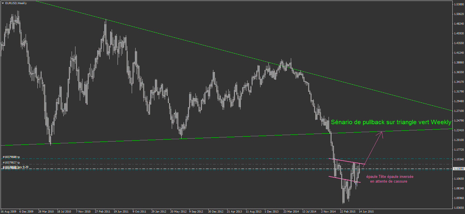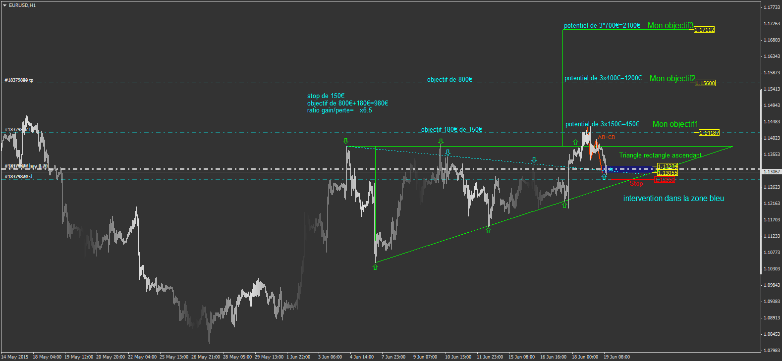 Je suis un peu perplexe car les fondamentaux ne sont pas vraiment pour une hausse de l'Euro mais je trade les graphe et rien que les graphe, donc c'est un peu du contre-intuitif mais bon, c'est ça le trading à mon sens.
