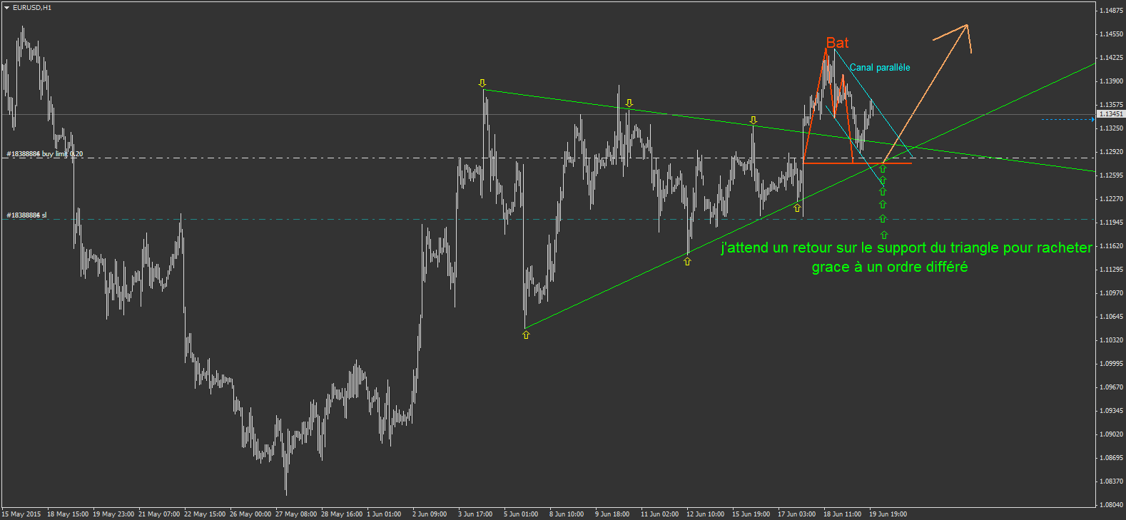 on peut aussi juste repréciser le support du triangle avant de décoller. pour prendre tout en compte, j'ai mis un ordre d'achat différé à 1.1285.