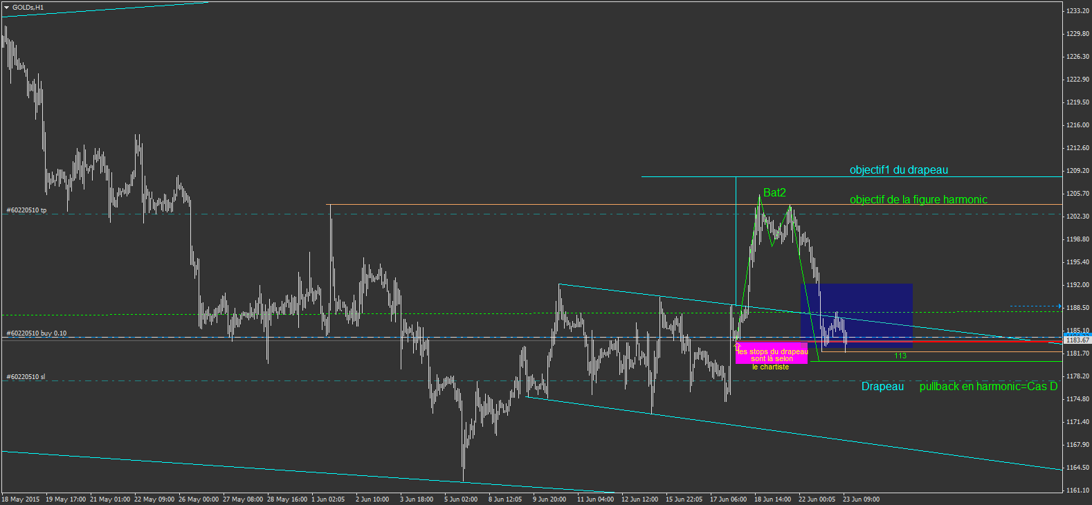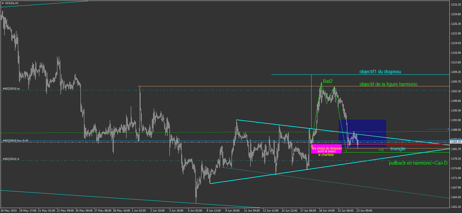 voila ma théorie. les figure harmonic sont l'outil utiliser pour créer les figures chartistes. tant que la figure chartiste n'est pas bien formé, les figure harmonic fonctionne, mais on peut déborder les zones d'intervention car le but est alors la figure chartiste à créer et non la figure harmonic. ensuite, une fois la figure chartiste créé, j'ai remarqué que les seul figure harmonic qui fonctionne alors, sont celle qui permettent de créer le piège du pullback sur la figure chartiste. mon meilleur cas d'intervention est donc le pullback de la figure chartiste, mais seulement si il représente une figure harmonic.je l'appel mon cas D.