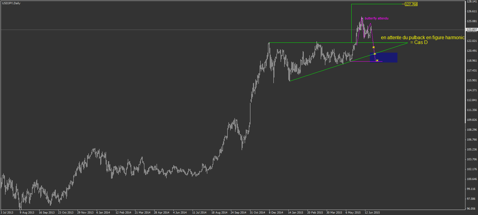 sur le usdjpy, j'attend de voir un pullback et de repérer une figure harmonic nette.
