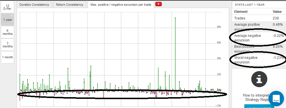 Oui tu as de bonnes excursions + et -, c'est un fait et c'est super MAIS à nouveau tes excursions négatives enchaînées sont ta fragilité formant ces à-coups de pertes journalières NON maîtrisées donnant de la volatilité malsaine à ton track record, c'est aussi un fait.