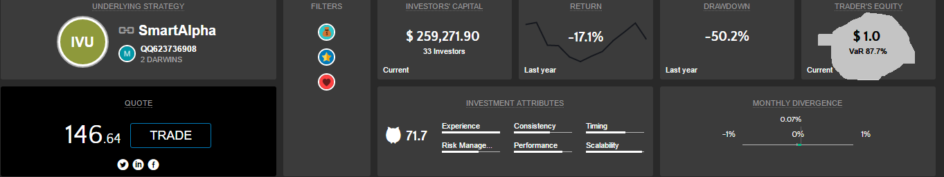 Exemple avec QAW. 1ere année de +120% avant de griller son compte en 2016 (stratégie) alors que le Darwin fait une bonne perf en 2015 pour subir une contreperformance en 2016 pour finalement faire -10% sur les deux ans (Darwin). Ou comment transformer un fou furieux en un mec "normal".
