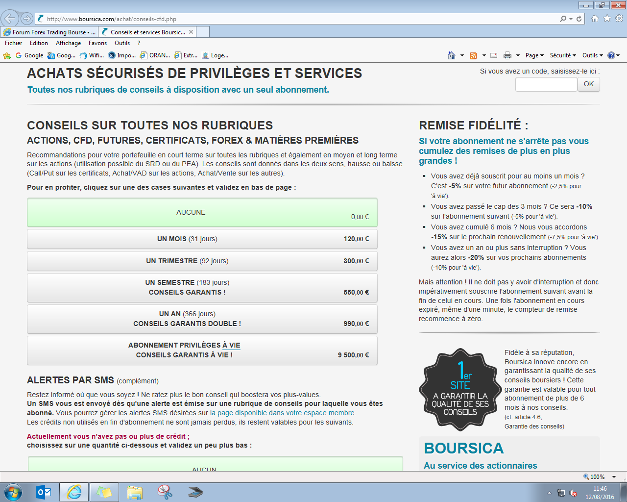 Voici le détail complet, il y a une deuxième bannière en dessous pour des crédit SMS (alerte envoyée) qui va de 15 à 190 €.