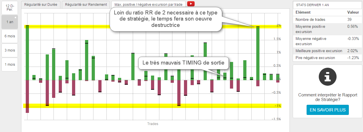 Le gain mensuel étant borné à la hausse, une amélioration n'aurait pour conséquence qu'une réalisation de l'objectif avec quelques trades en moins. Ce qui au final nuit à la note d'expérience qui sera le boulet de la stratégie, tout comme pour RAY.