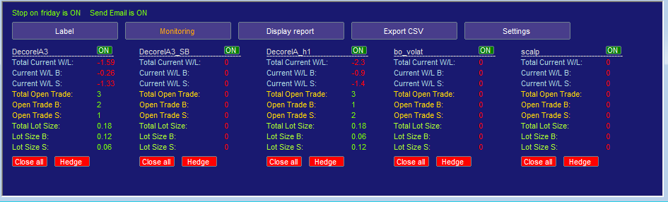7/ 2 boutons pour chaque EA permettant de tout cloturer ou hedger manuellement, ce qui aura également pour effet de suspendre l'EA.