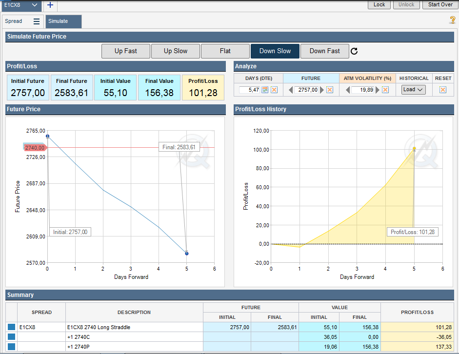 Voici par exemple un test sur un "long straddle sp 500"