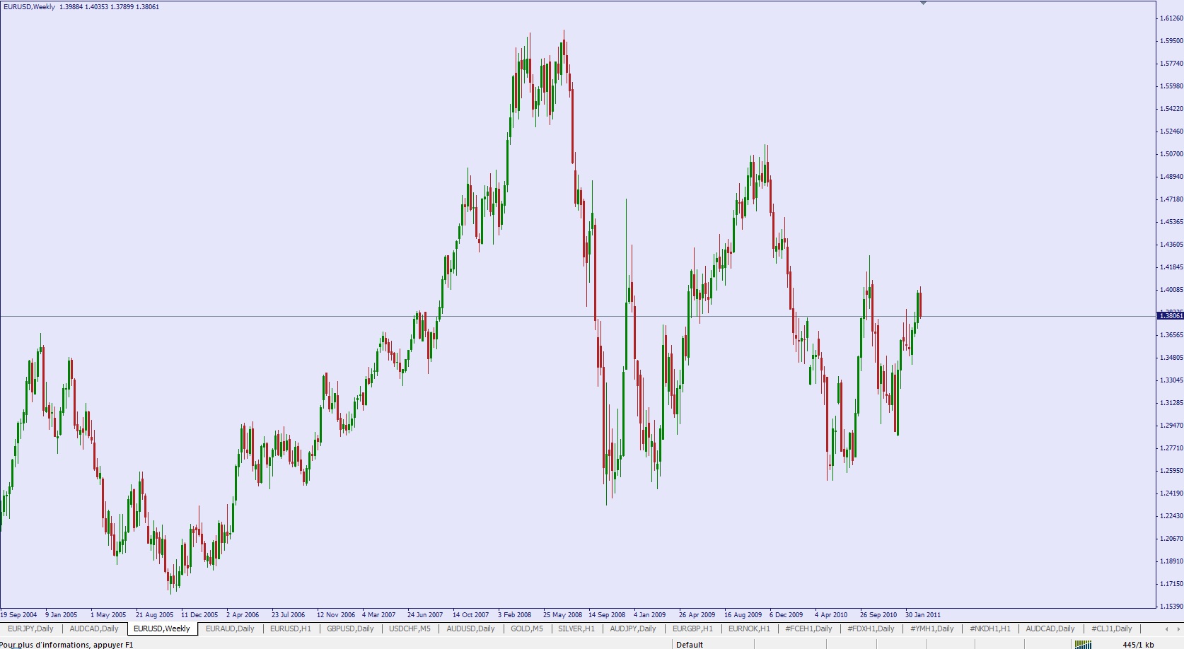 Pourquoi le pic baissier sur EUR/USD n'est pas entièrement visible chez tous les brokers, et qu'on croit donc que le pic baissier de la crise de subprimes était plus bas que celui de la crise Grecque (où l'on est descendue jusqu'à 1.188 environ)?