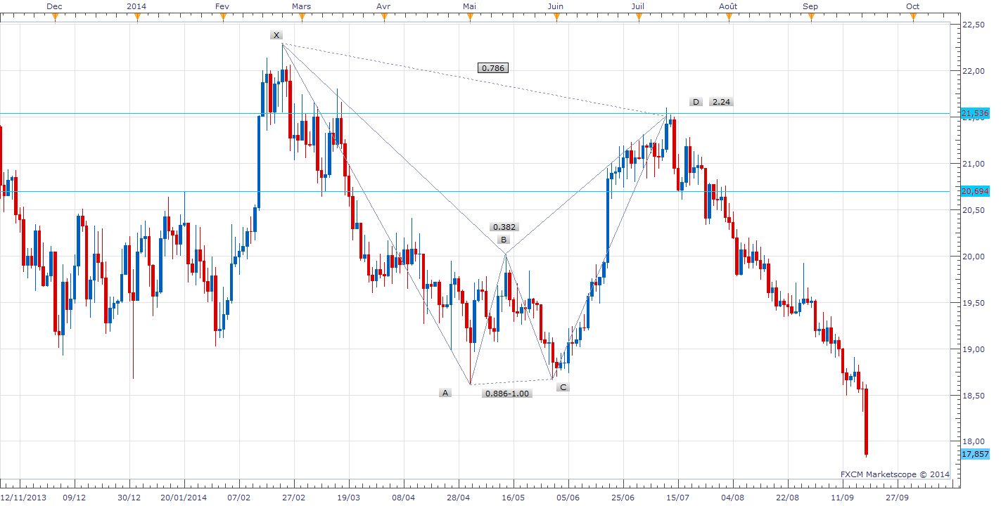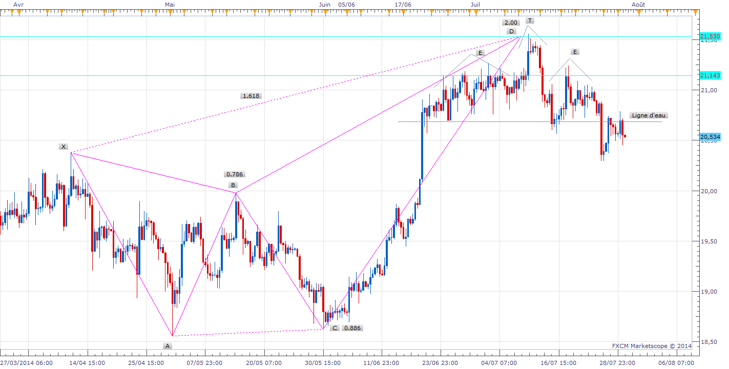 D=21,60$ soit "1.618% d'extension Fibonacci du mouvement XA"