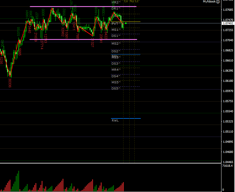 Après un pic aux alentours des 1.0775 lors de la session overnight, EURUSD effectue une correction ; les volumes d'offre sont bien visibles et la correction devrait se poursuivre tant qu'il n'y a pas d'arrivée significative de volume de demande ; surveiller cela. Pour les mises à jours si il y en a,...