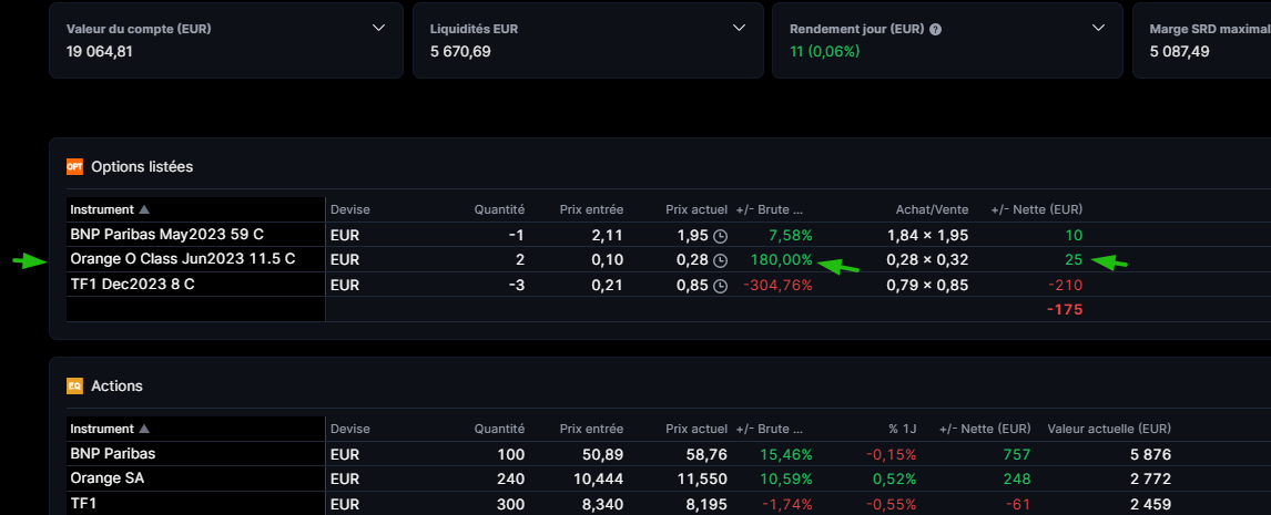 Moi avec mes achats de call options Orange je gagne 180 % en moins de un mois