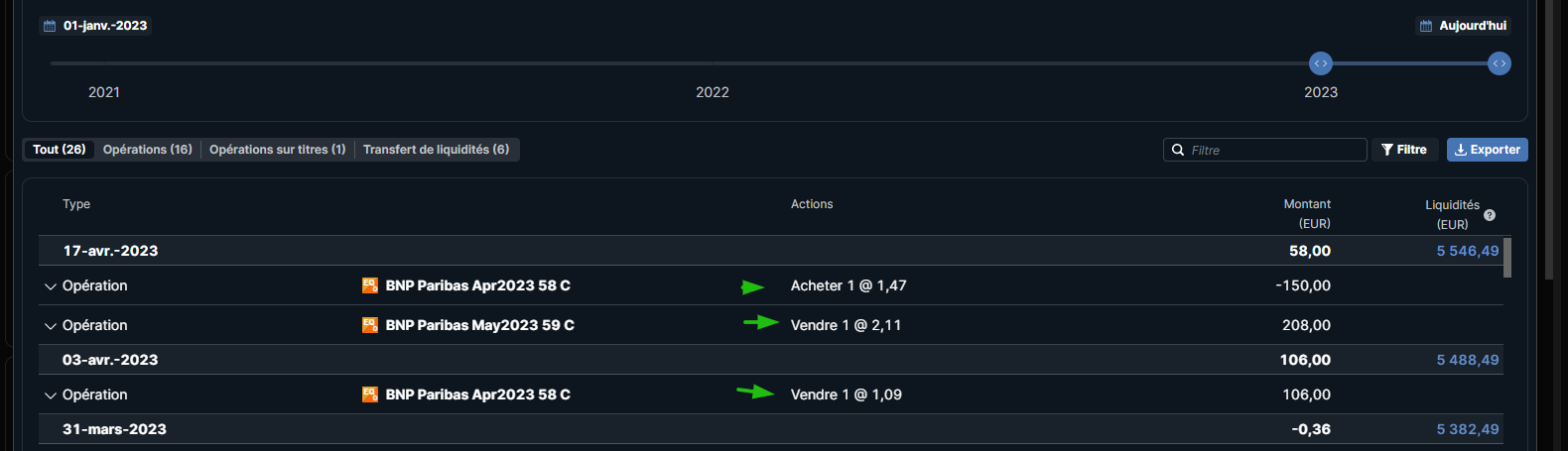 Pour etre complet quand j ai vendu le call BNP l 'action était a 56 € aujourd hui 57€ ( + 100€). Au final quand on nous vend le covered call comme la 8 eme merveille du monde attention :)