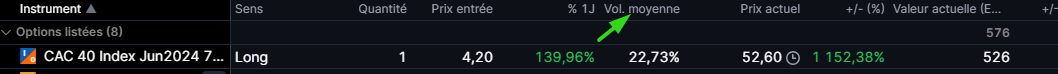 en cour achat option put +554% cac40 échéance juin risque initial 42 €