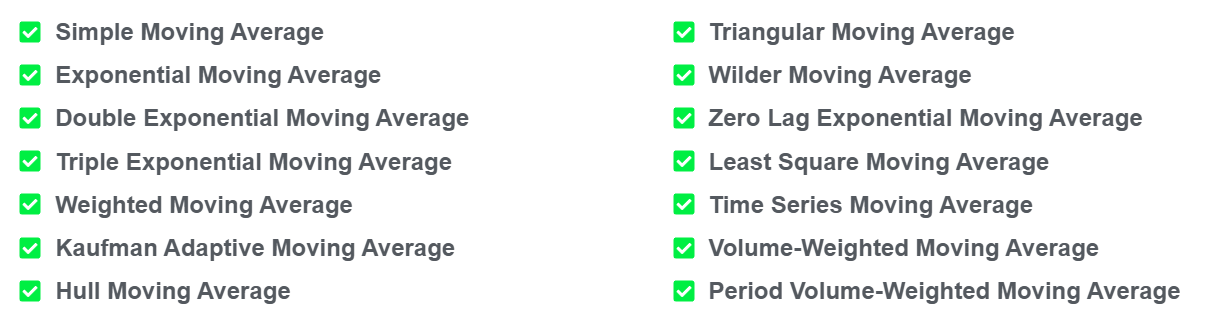 L’indicateur Golden Cross reconnaît les 14 moyennes mobiles suivantes :