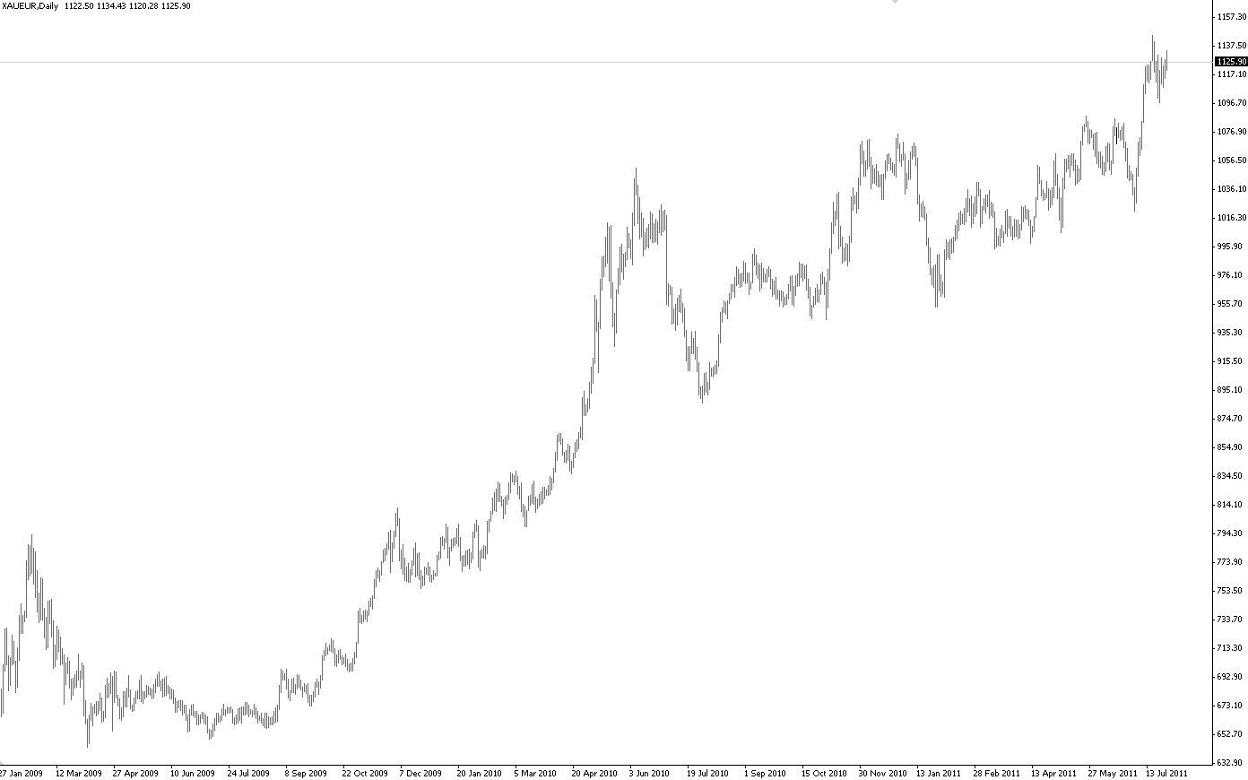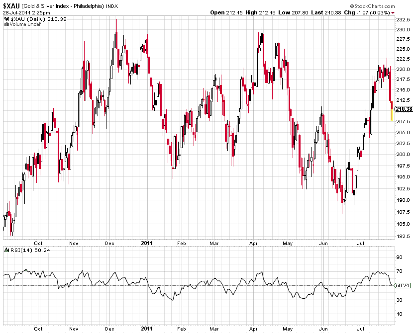 du 25 au 28 juillet 2011 : La danse de Saint Guy à propos de la dette (pardon, de la tombe que les Américains doivent creuser ou non plus profond), va permettre des actions spéculatives massives sur l'or. Attention donc aux corrections.