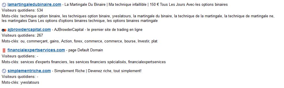 Vous pourrez aussi remarquer que tous les sites sont conçus sur le même modèle.