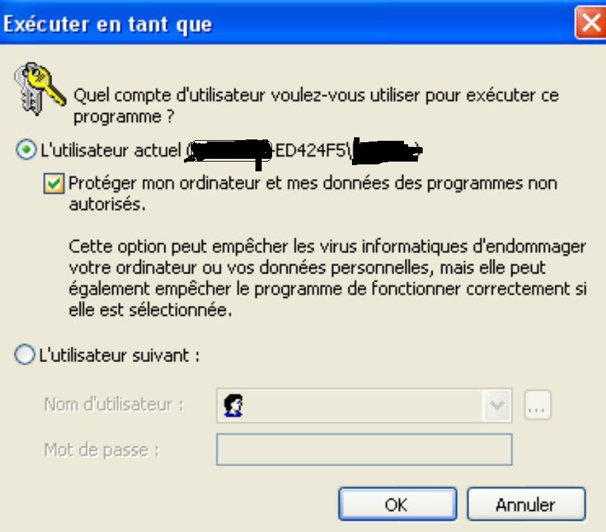 Je parle simplement de faire clique droit puis exécuter en tant qu'administrateur quand tu cliques sur le fichier d’installation de ta plateforme. Personnellement je suis sous Windows 7 édition familiale. Peut-être qu'avec Windows XP ça fonctionnait autrement.pegase a écrit :Pour le compte administrateur, tu parles bien de voir le fichier joint je suis sous windows XP