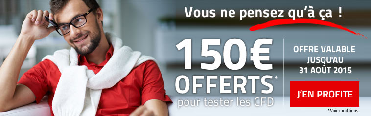 ouverture d'un 1er compte avant le 31.08 et trade de 15 lots sur CFD avant le 30.09 (bonus de 150€ disponible - le client peut les retirer une fois reçu)