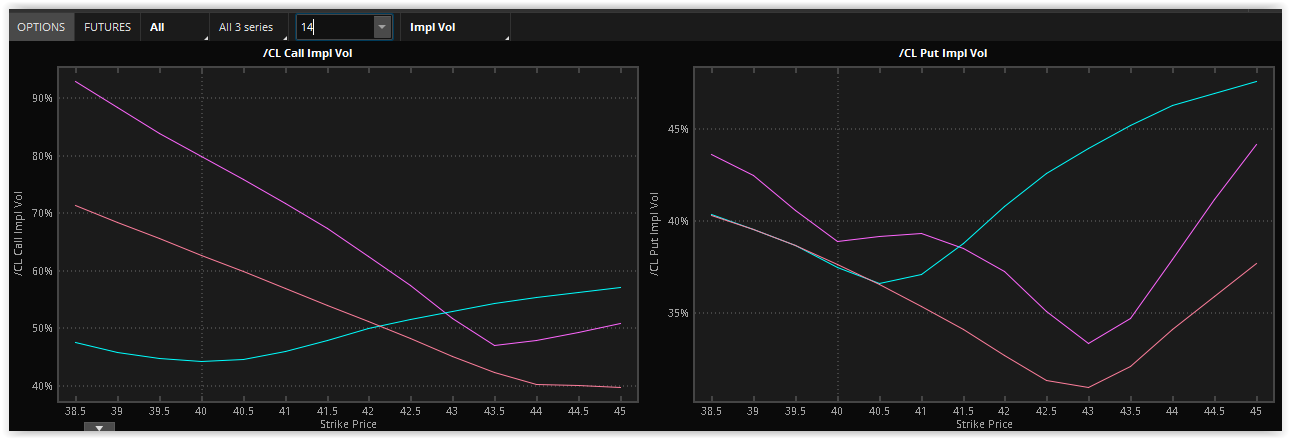 Oui Ulysse, la VI varie en fonction de l'offre et de la demande. Et ci-joint une copie d'écran du smile de VI sur les options Crude.