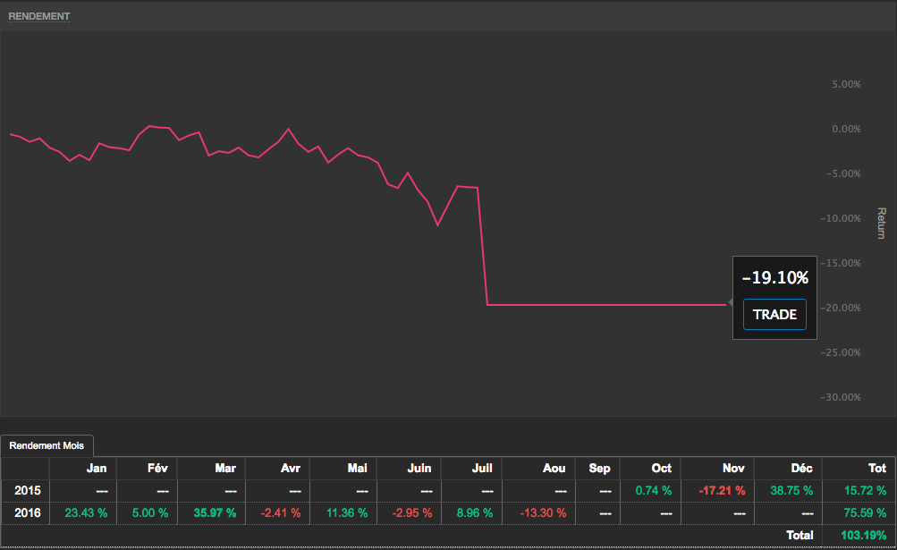 FullPips je ne tiens pas à te charier mais je crois que tu profites simplement d'un effet de marché globalement favorable. Entre jeudi et aujourd'hui, suis passé aussi à 2,55% (+1%)FullPips a écrit : J'aurais été au moins une fois dans le vert en 2016![]()