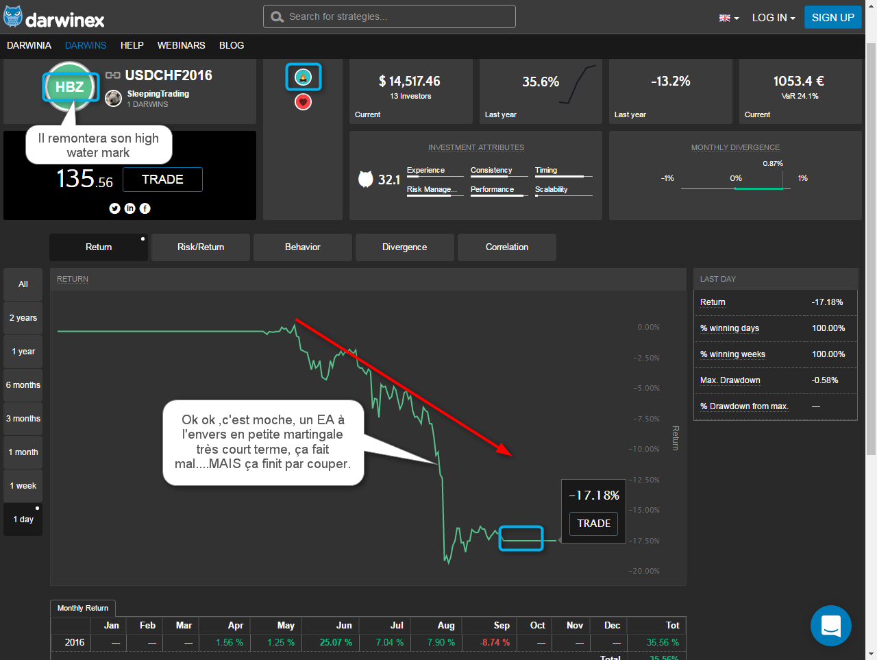 Bien oui Eric, c'est ce que je disais sur mes stratégies qui depuis plus de 10 ans ont (toujours) su remonter les creux. Donc le délit d'initié depuis un darwin est clair pour celui qui connait ou a bien sculpté la stratégie.