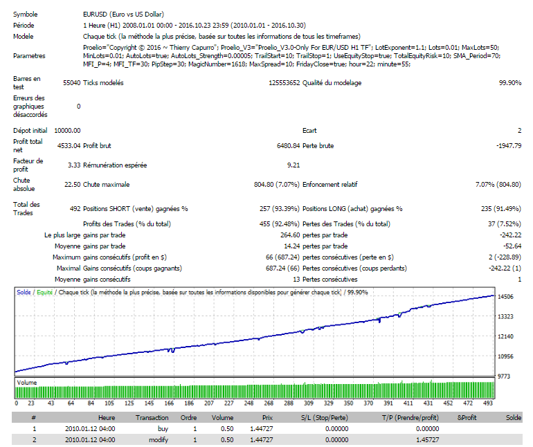 J'ai tenté de faire un backtest de ton EA Proelio V1.0 à partir du 01/01/2008.