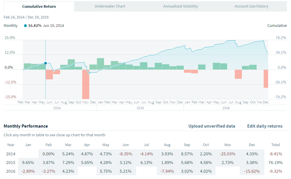 Pour l'instant cette stratégie fait partie de l'ensemble de stratégies que j'utilise dans mon compte principale dont j'ai publié les résultats 2014 et 2015 sur ce forum.