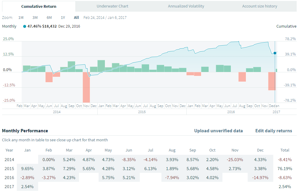 Pour l'instant cette stratégie fait partie de l'ensemble de stratégies que j'utilise dans mon compte principale dont j'ai publié les résultats 2014 et 2015 sur ce forum.