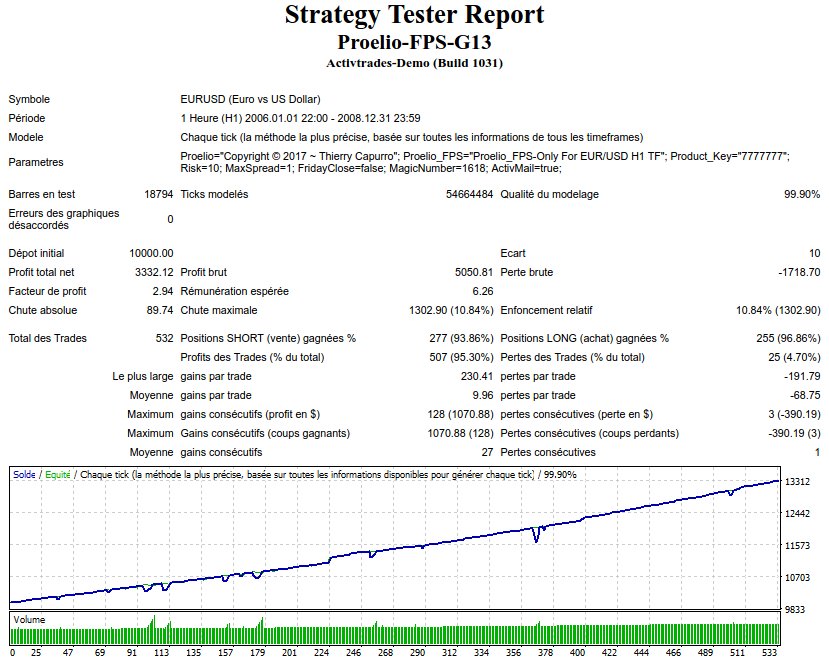 Afin que Proelio-FPS-G13 soit accessible à tous, je ne pense pas le vendre, mais plutôt le "louer" mensuellement moyennant une participation de 20 euros par exemple. Rien est encore décidé de ce coté là. Je veux attendre de voir si il donnera en réel ce qu'il promet en backtest.