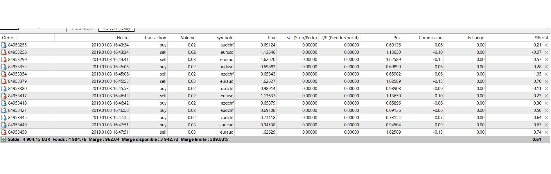 Pour le moment j'arrive à me débrouiller en manuel, mais l'objectif est d'arriver à le backtester sur mt5 (car mt4 ne propose pas le backtesting multipaire) pour avoir une idée de la profondeur du drawdown et ne pas refaire la même erreur :evil: