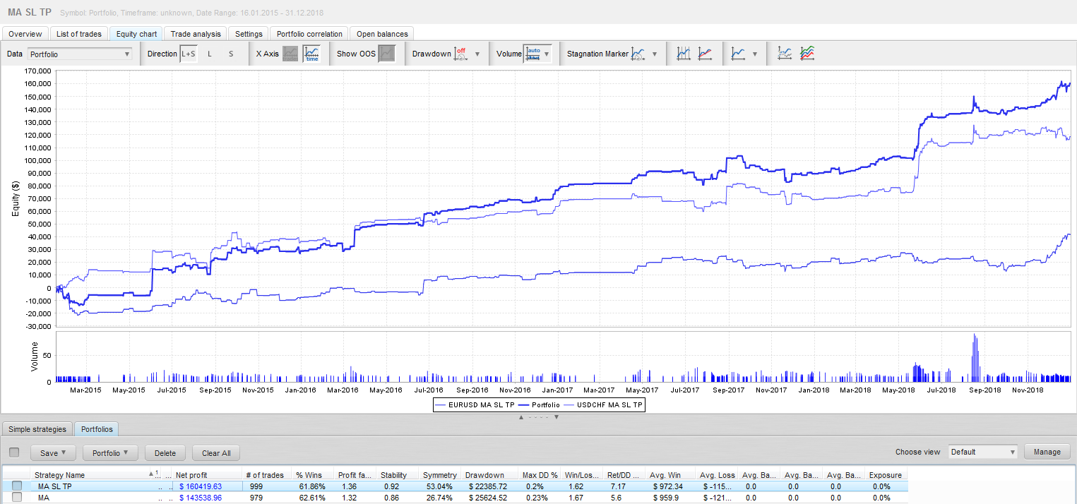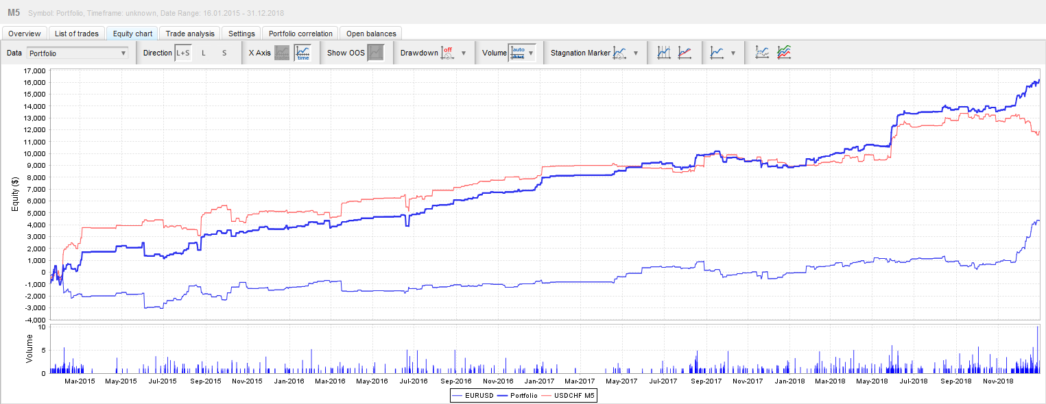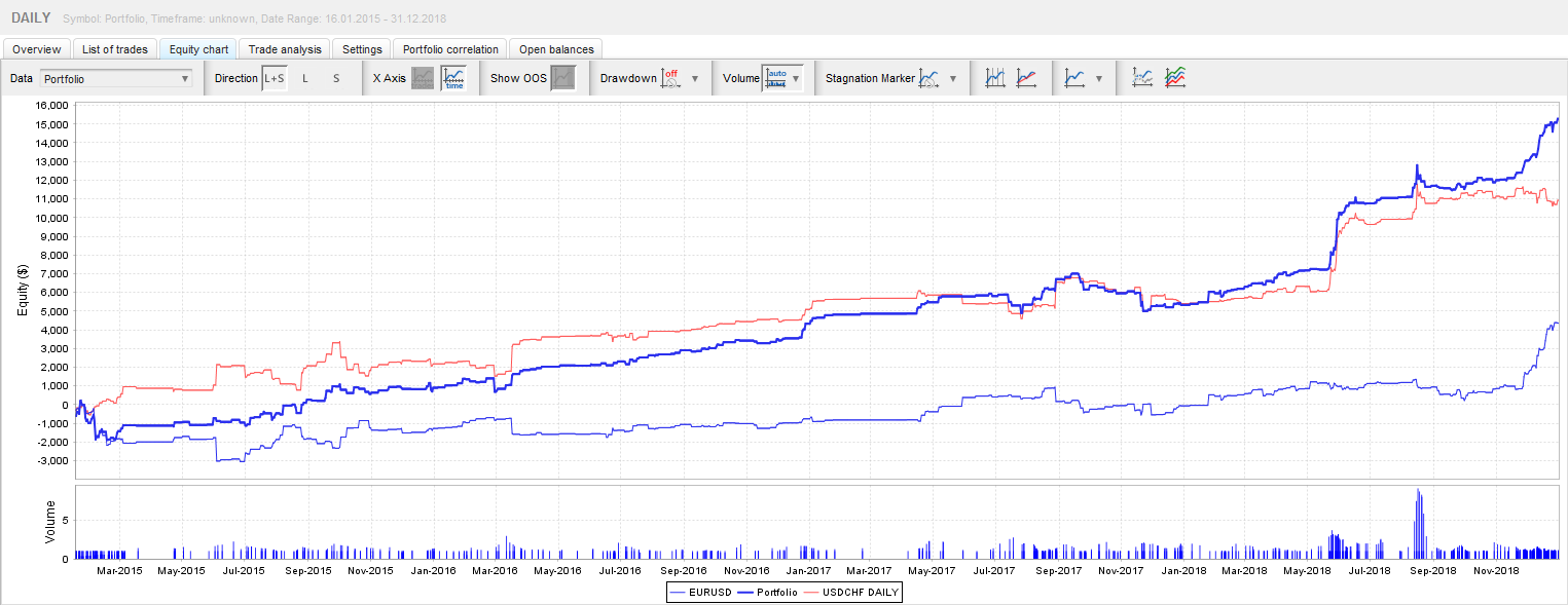 Backtest "arbitrage statistique corrélation" eurusd & usdchf 2015-2019