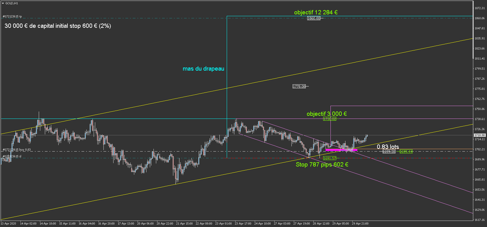 j'ai aussi acheté le GOLD pour un objectif ambitieux sur un autre compte. Ne pas reproduire, c'est risqué , le stop n'est pas loin du tout