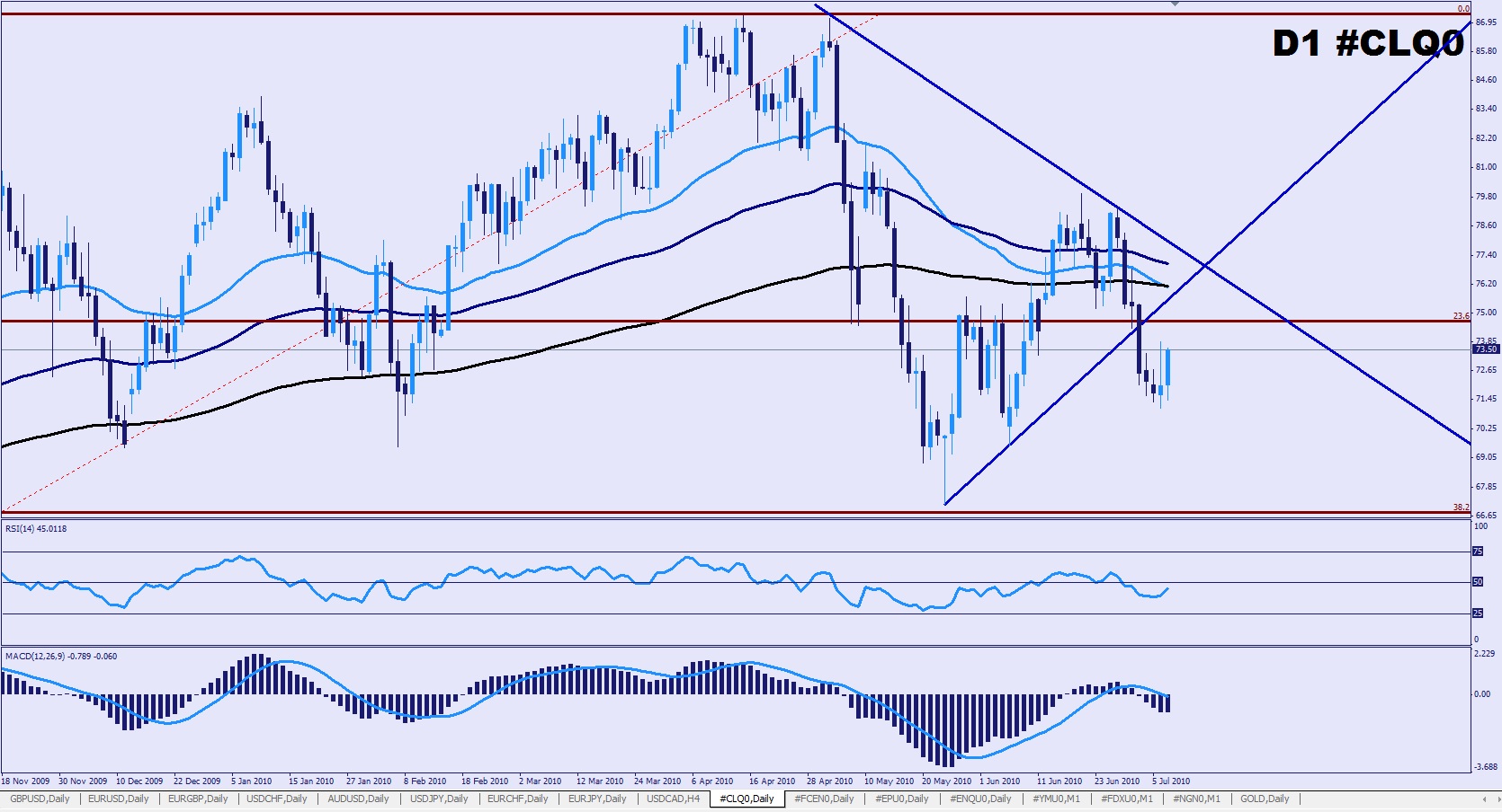 Nous nous dirigeons actuellement vers les 67$, 38.2% de retracement de cette dernière, zone qui a déjà été testée fin mai 2010.