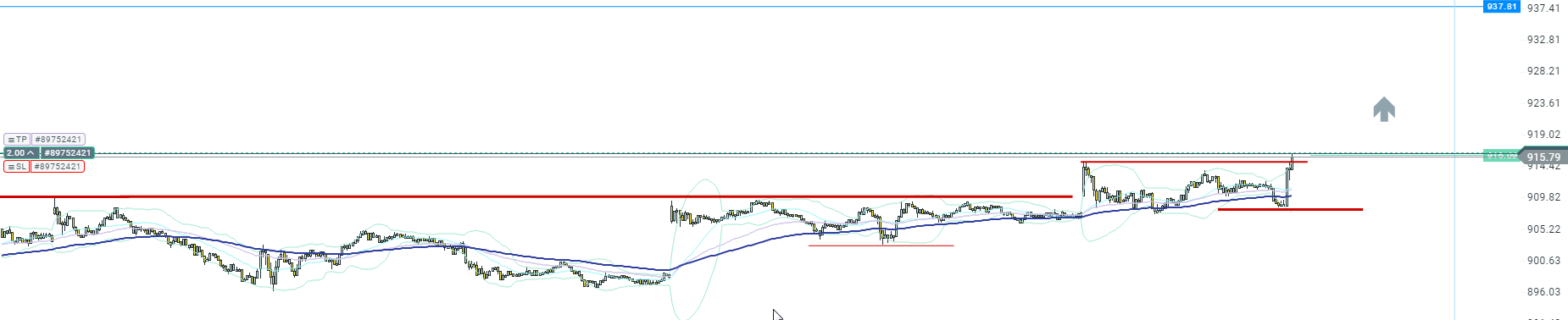 Pour l'instant je ne remonte pas le stop loss pas avant que le niveau 922,43 soit dépassé.