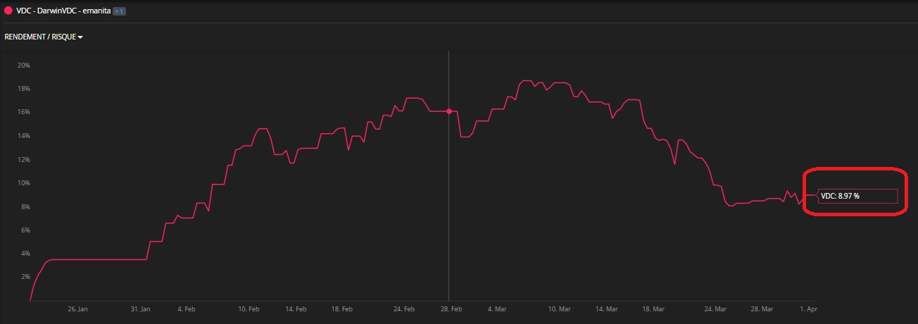 résultats du 1er trimestre encourageant, puisque le S&P500, l'actif phare de la Finance Mondiale, est battu par notre Darwin VDC :
