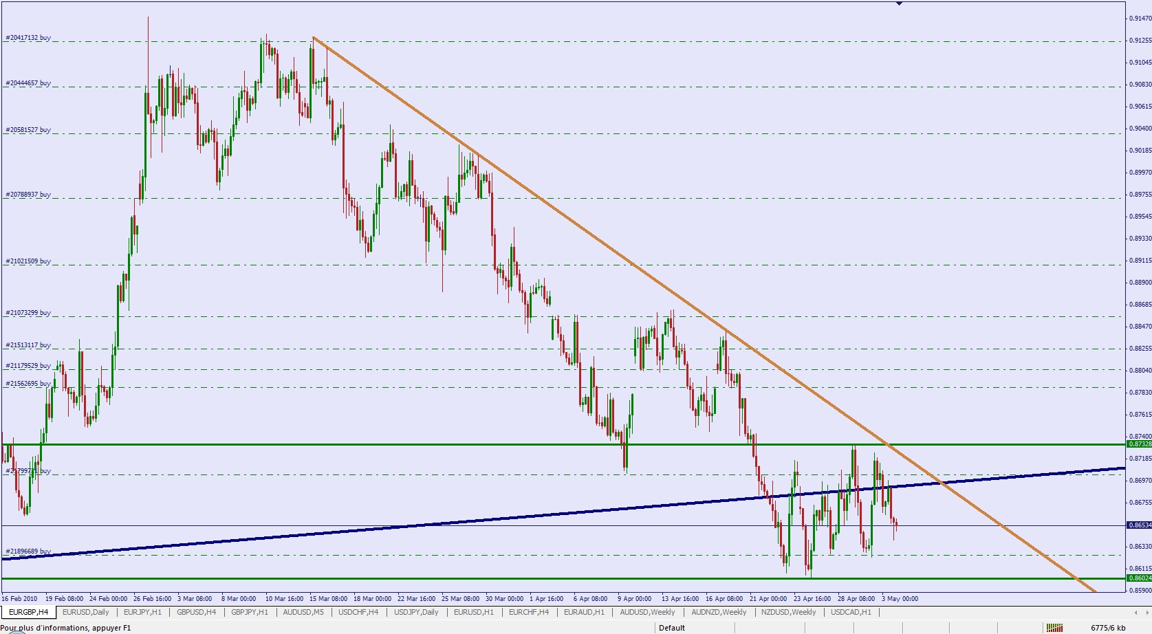 il est vrai que le cassage du triangle a été violent a la baisse, la crise grecque n'y ait pas etrangére, mais attention aussi a la livre qui pourrait subir elle aussi des problémes avec la situation conjoncturelle au royaume uni :wink:
