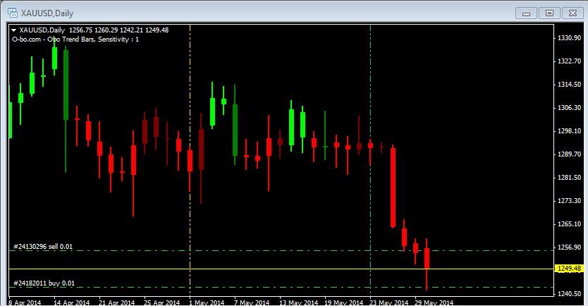 comme vous avez pu constater l'après midi ne m' a pas donné raison et le prix de l'or a continuer a retracer je suis a découvert donc de 330 points.