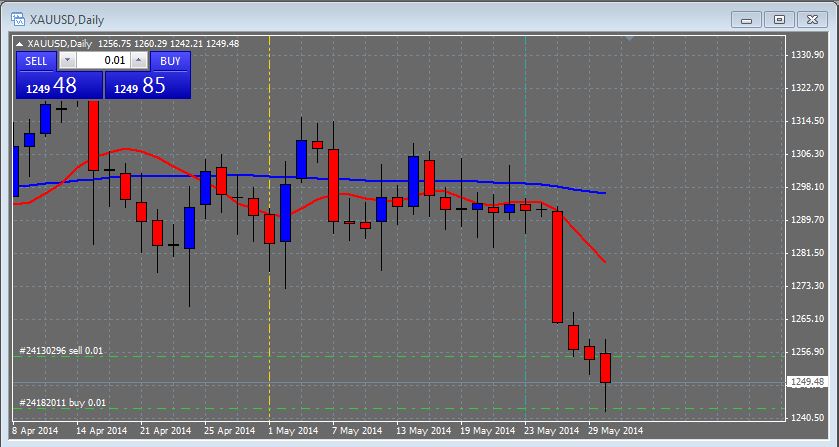 ce matin l'or a commencer par baisser,j’espère que cette après midi la tendance va prendre le même chemin et çà seul madame soleil nous le dira!!! dans tout les cas je reste vendeur dans l'objectif à court terme le dernier point plus bas dans les environ de 1243$ c' est aussi ma dernière position vendeuse.