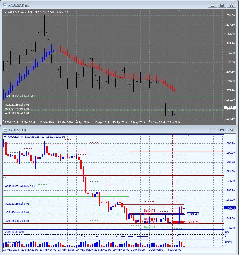 bon et bien ce matin le prix monte j’espère au moins que l on va aller jusqu’à mon "sell stop" à 1269$ et nous serons arrivé à mon PP mensuel et la après c est ou on va chercher S1 et j ai tout gagné ou on va chercher R1 et j ai tout dans le c.... mais bon seul les initiés savent a peu près ce qui va se passer je vais me contenter de voir ce qui ce passe et essayer de comprendre ça sera déjà pas mal!!!