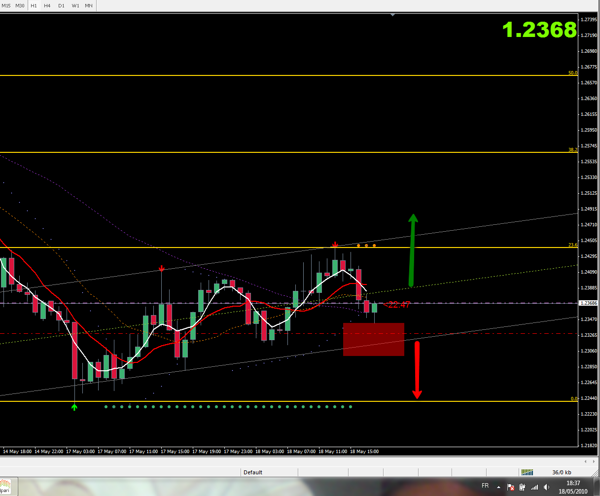 EURUSD Analyse 24/05/2010 en 4h à 7h Paris