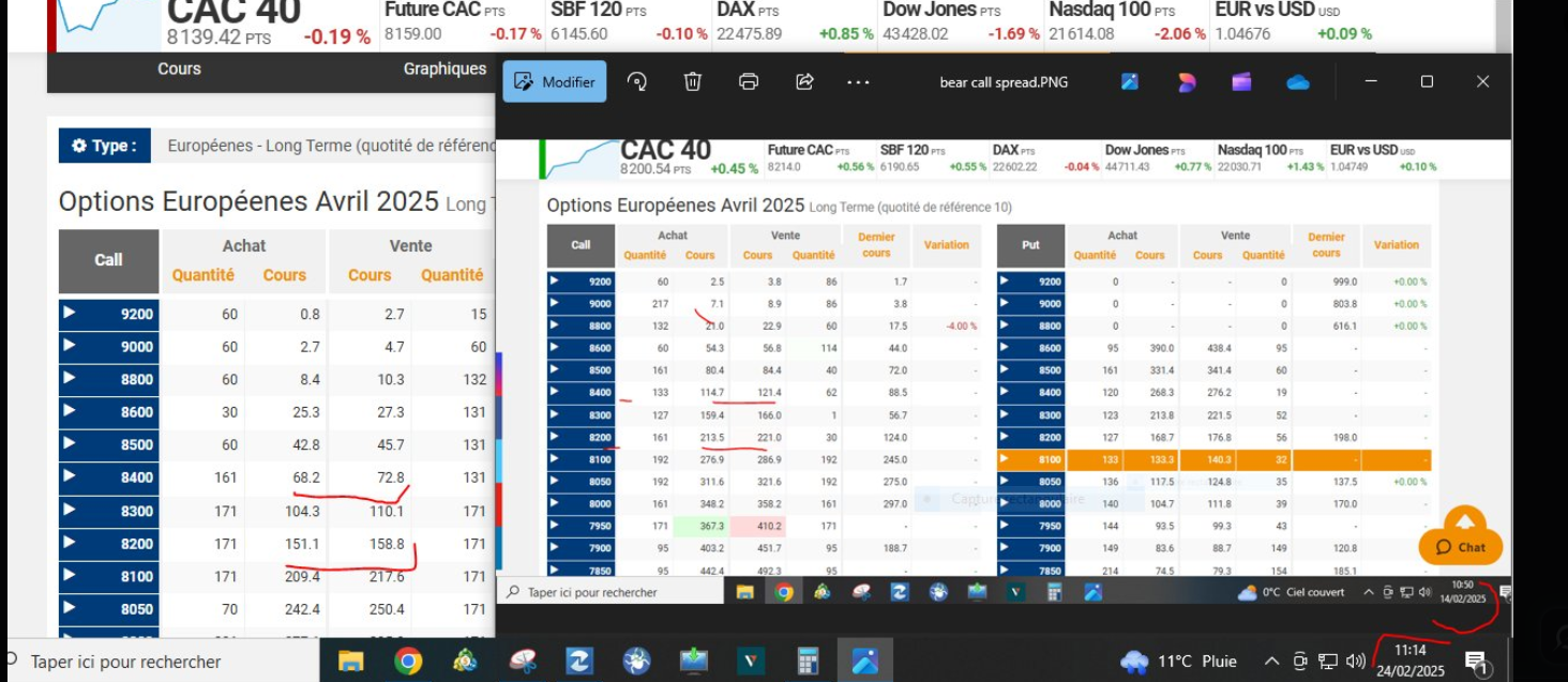il y a peu j ai vendu un call cac 40 échéance mars est bien j 'aurais du choisir avril car j'aurais gagner beaucoup + est cela rien que en 10 jours https://x.com/PhilNfp/status/1893969030211338241