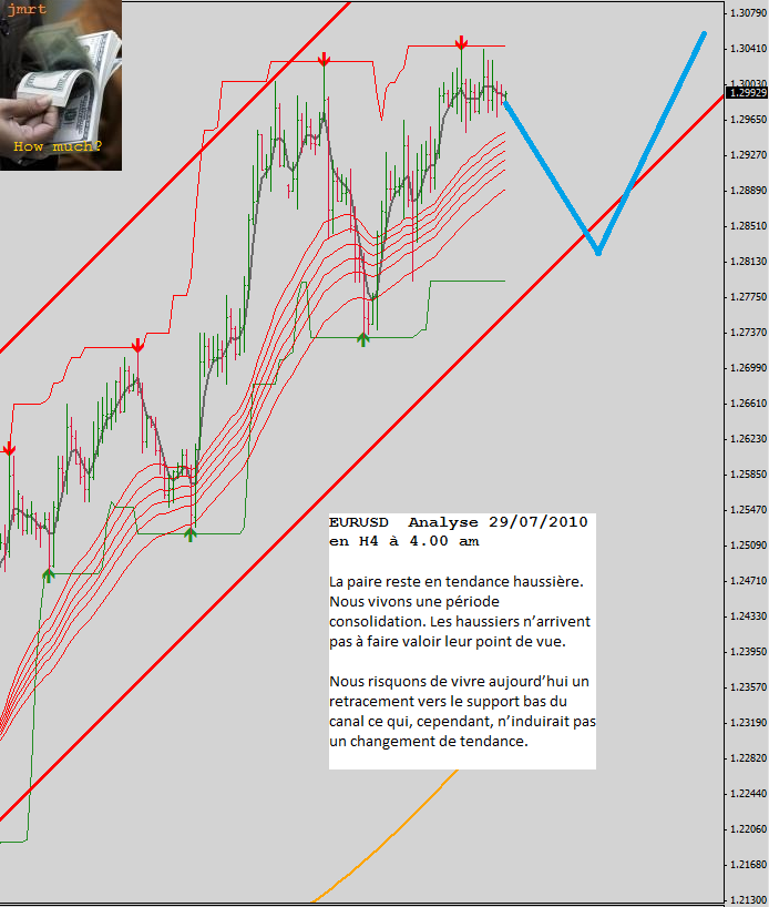 EURUSD Analyse 30/07/2010 en H4 à 5.30 am