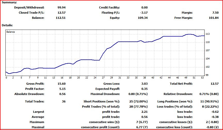 Un peu plus de 50€ en une semaine. J'ai ouvert un compte demo chez JFD Brokers où j'ai lancé le EA sur toutes les parités en même temps.stephane2.0 a écrit :D'accord ! Je vais voir à l'installer sur mon VPS alors.