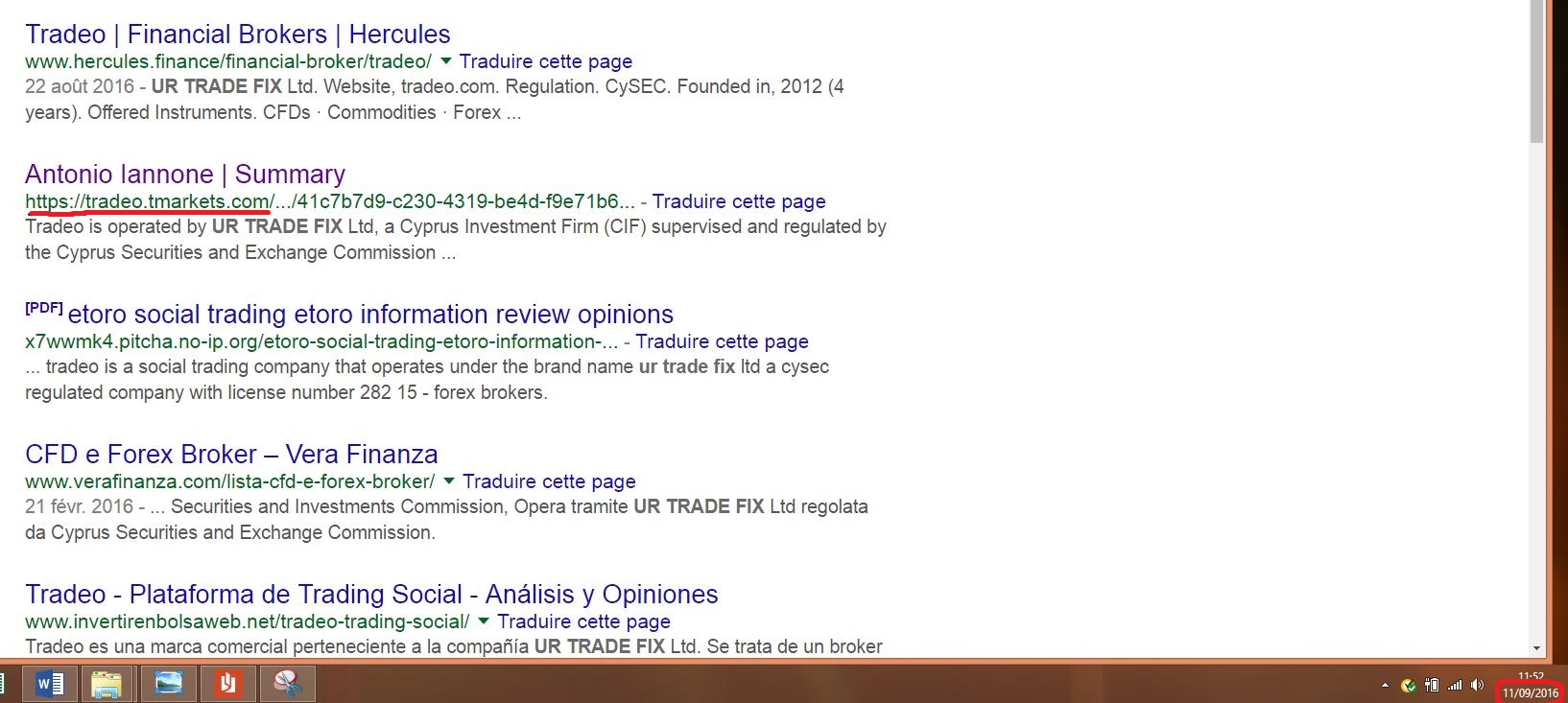 Merci pour vos contacts et commentaires, ci joint capture écran actuelle de google montrant Tradeo et Tmarkets lié dans l'adresse http d'un client actuel de Tradeo!