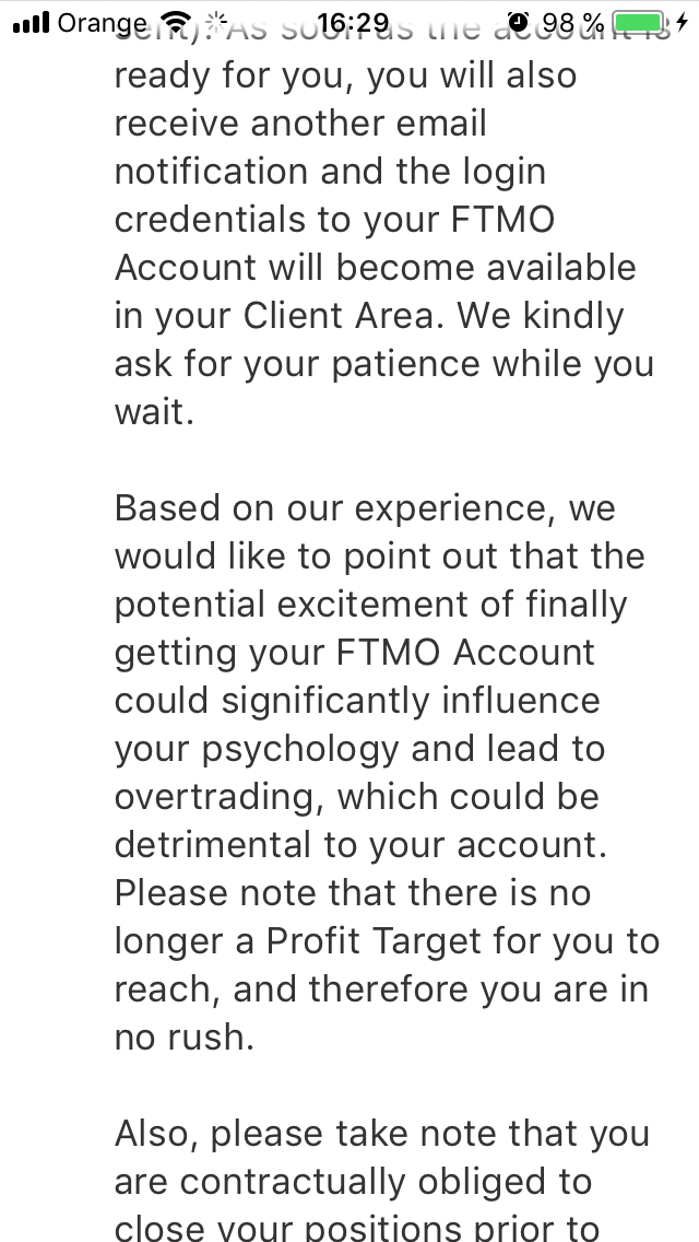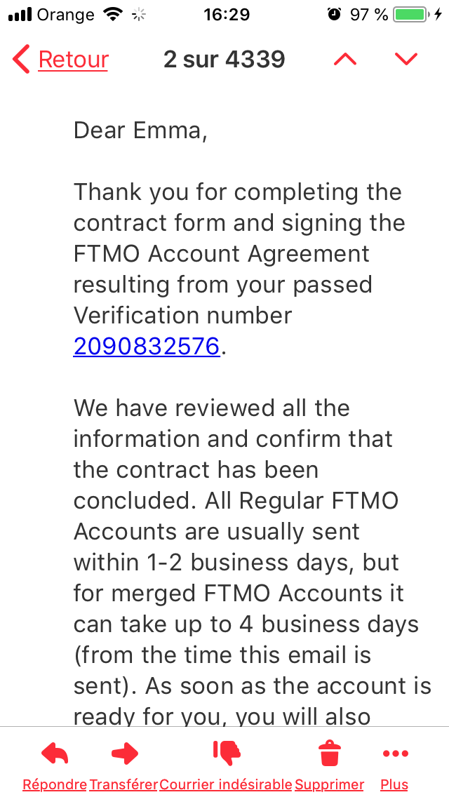 Il est vrai qu'au début, j'avais peur d'échouer le premier test, je savais trader avec un petit capital au départ et je voulais opter pour le comtpe financé à 50k$ mais craignant d'échouer l'étape de vérification avec des critères d'évaluation assez complexes j'ai fait appel à un professionnel qui a passé toutes les étapes pour moi et a réussi brillamment. (en plus d'être satisfait de ses services, je n'ai pas honte de le dire mais je continue encore aujourd'hui à utiliser ses services pour passer mes tests)