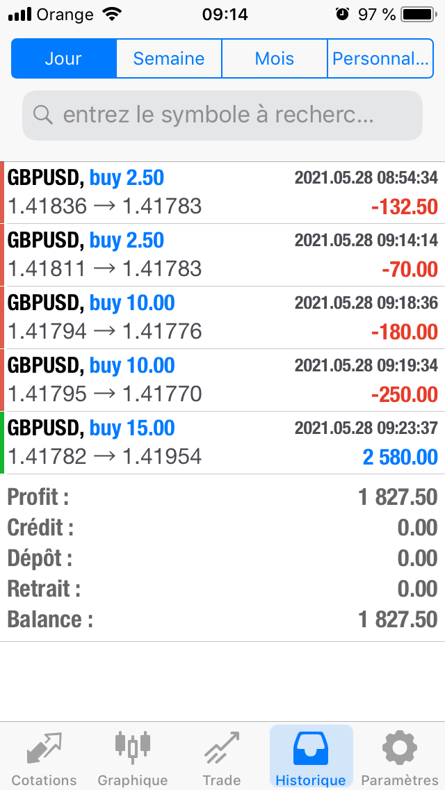 Il faut avouer que beaucoup de traders échouent et perdent de l'argent et je l'avoue moi-même, si je n'avais pas fait appel à un trader pour passer mes tests, j'aurais probablement perdu de l'argent dès le début et j'aurais perdu espoir.