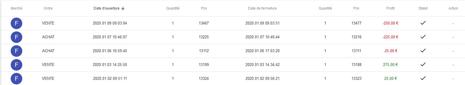 5 trades dont 3 perdants. Le système ne trade plus depuis le 9 janvier.