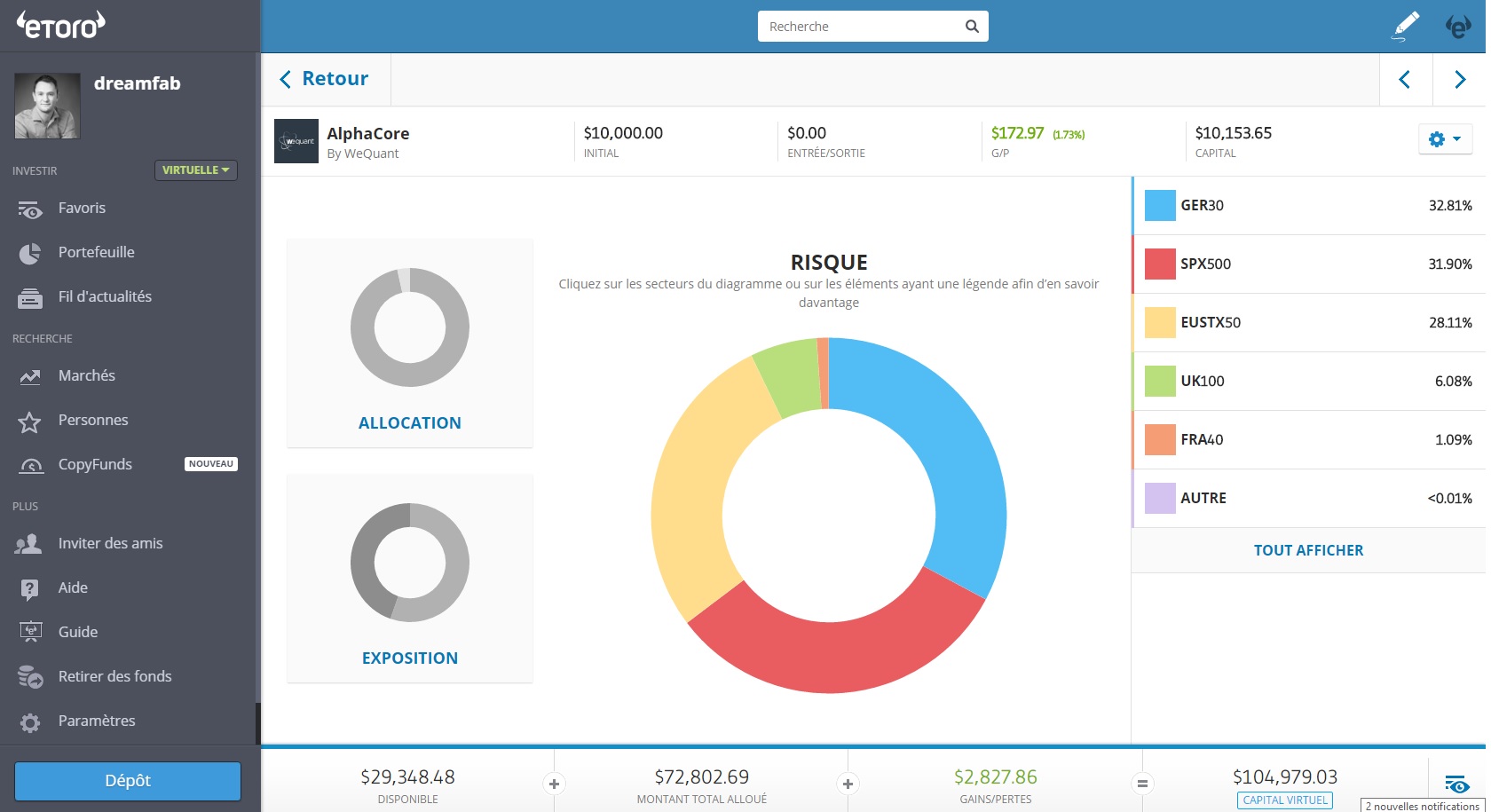 Moi aussi tenter par les CopyFunds d'eToro je lance un test sur un compte virtuel...